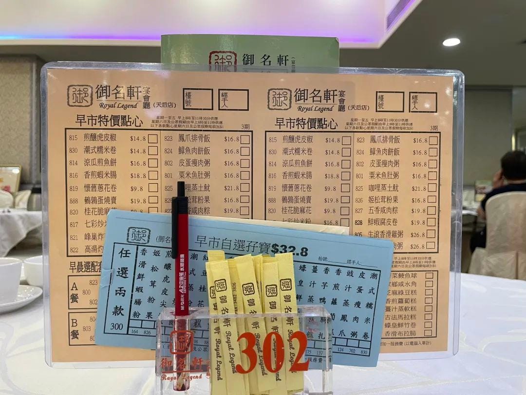 翌晨,楼下茶楼吃早茶,去得早了,坐了十几位食客,不见店员。正迷茫间,邻桌老爷爷笑着对我们说「八點先至開始」,这句白话我识听,“(早茶)八点才开始”,比周末晚一个钟头。