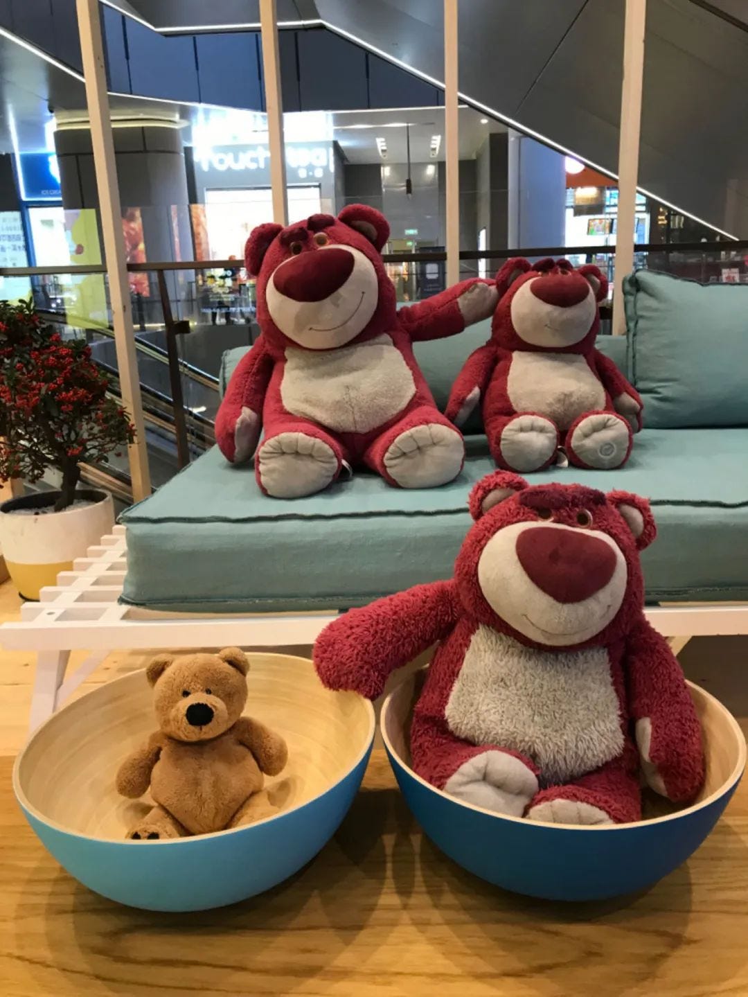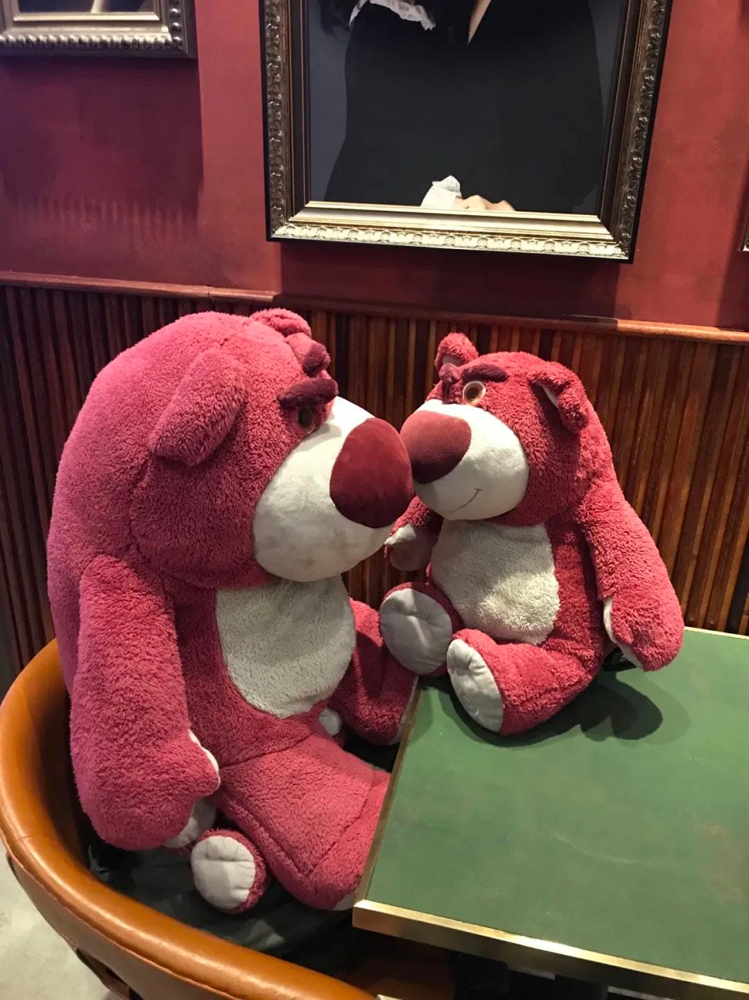 中文把这头熊称为“草莓熊”,我认为这是一个译名超过了原名的经典翻译例子。这个角色玩偶在迪士尼商店里的意外走红估计也是设计者没有料到的吧。