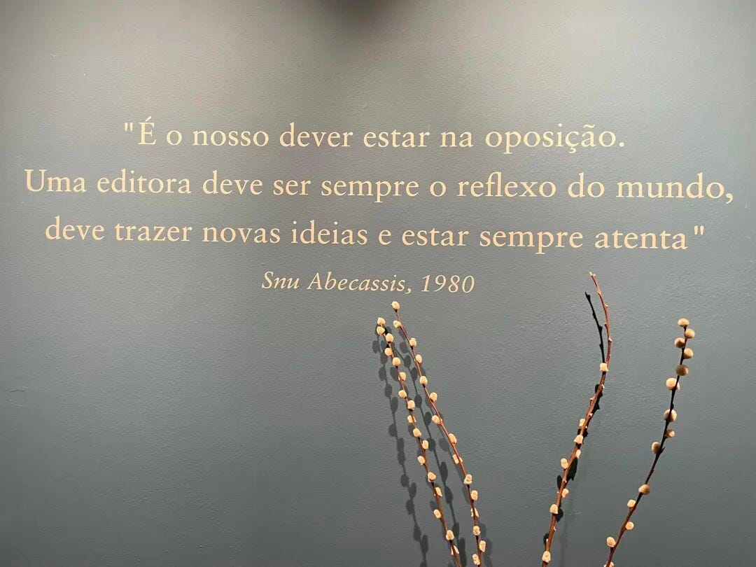“And our duty is to be in opposition. A publisher must always be a reflection of the world, must bring new ideas and always be attentive.” - Snu Abecassis, 1980