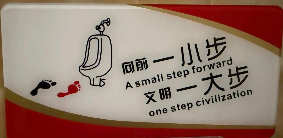 我最反感的一类小便池标语就是这种——搞得尿尿关乎人类文明进程似的,拜托,只是撒泡尿,不是登月。