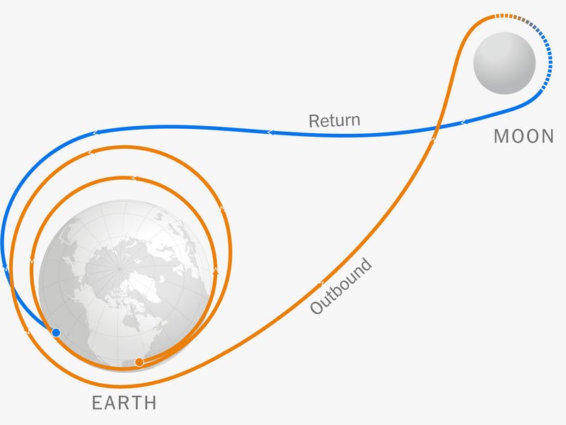 载人绕月飞行(Crewed Lunar Flyby),不在月球表面着陆。